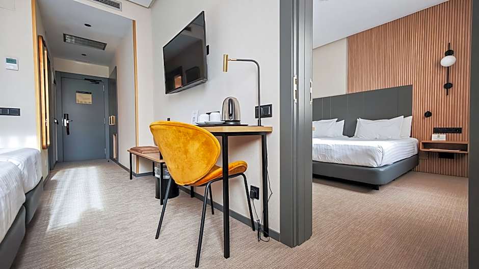 Rooms similar to our Standard rooms, but more spacious and with a bathroom that will surprise you with its abundance of natural light and a whirlpool tub. They feature a 1.80 x 6.6 ft double bed, a duvet with premium linens, laminate flooring, a large work desk, mini-bar, safe, telephone, flat-screen LCD TV, and a full bathroom. Our CLUB service offers late check-out or early check-in, subject to availability.