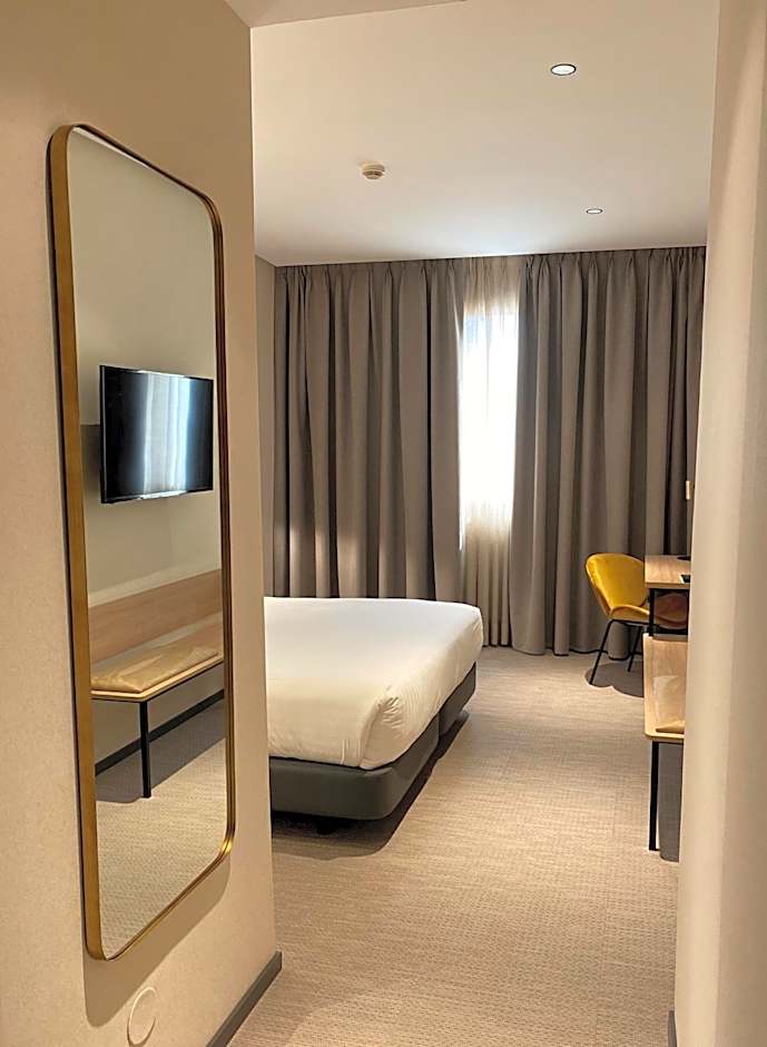 The Standard rooms are spacious, fully soundproofed, exterior rooms decorated in a modern style with warm colors that invite you to rest. They have a queen-size bed measuring 5.2 ft x 6.6 ft or two twins measuring 3.4 ft x 6.6 ft each, depending on your choice. They are equipped with duvets and the finest linens. They have floating laminate flooring, a large work desk, mini-bar, safe, telephone, flat-screen LCD TV and full bathroom. located only on the first floor.