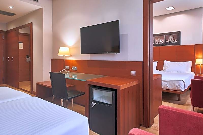 The Silken Club Deluxe Rooms are completely renovated, offering a lot of space and a bathroom with natural light and a round Jacuzzi to make your stay an unforgettable experience. Located on the fifth floor, these spacious rooms have a double bed (1.80 x 6.6 ft), duvet with the best textiles, innovative woven vinyl flooring, work desk, USB and USB-C charging point , mini-bar, safe, telephone, TV and bathroom with shower. Our CLUB service offers clients conditions such as late check-out or early check-in subject to availability, coffee set and all Silken amenities and VIP amenities (bathrobe and slippers).